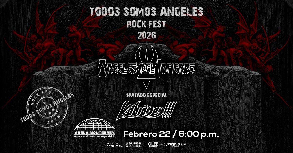 En el umbral de un nuevo capítulo para el heavy metal en habla hispana, se alza con fuerza el anuncio del Todos Somos Ángeles Rock Fest 2026, un ritual de guitarras, voces y furia hemisférica que trae consigo nombres que representan vértices del metal veterano y reciente por igual. Ángeles del Infierno y Kabrönes con miembros que labraron una época gloriosa para Mägo de Oz se funden en una gira irrepetible que desembarcará el 15 de febrero del 2026 en la Arena CDMX, el 22 de febrero en la Arena Monterrey y 01 de marzo en la Arena Guadalajara.