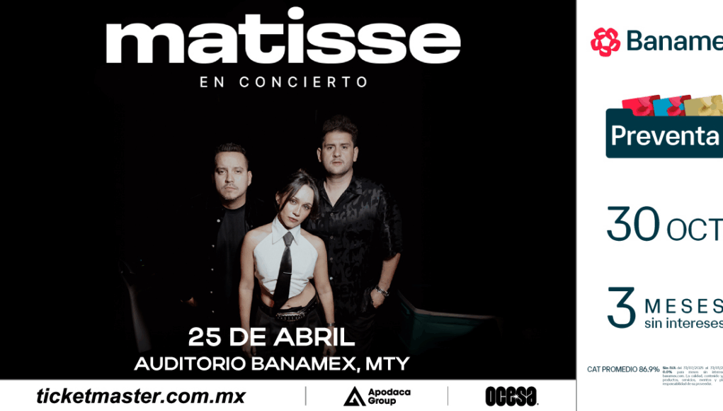 Matisse sigue firme en su misión de conquistar los corazones de su público mexicano, y ahora, es el turno de la Sultana del Norte para dejarse envolver por el romanticismo de la agrupación. Los fans de Monterrey tendrán una cita imperdible con las melodías y letras que están robando suspiros el próximo 25 de abril de 2026 en el prestigioso Auditorio Banamex. Será una noche dedicada al amor y el desamor en su máxima expresión. ¡La demanda es alta! No esperes más y corre por tus boletos antes de que se agoten para este esperado show.