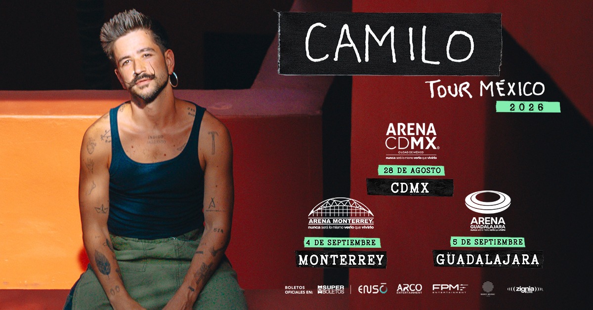 La superestrella colombiana Camilo anuncia hoy su gira mundial más ambiciosa hasta la fecha: el Camilo Worldwide Tour 2026, con el que recorrerá más de 15 países de Europa y de todo el continente americano, llegando a México a la Arena CDMX el 28 de agosto, Arena Monterrey el 04 de septiembre y Arena Guadalajara el 05 de septiembre, a las 21:00 horas, respectivamente.