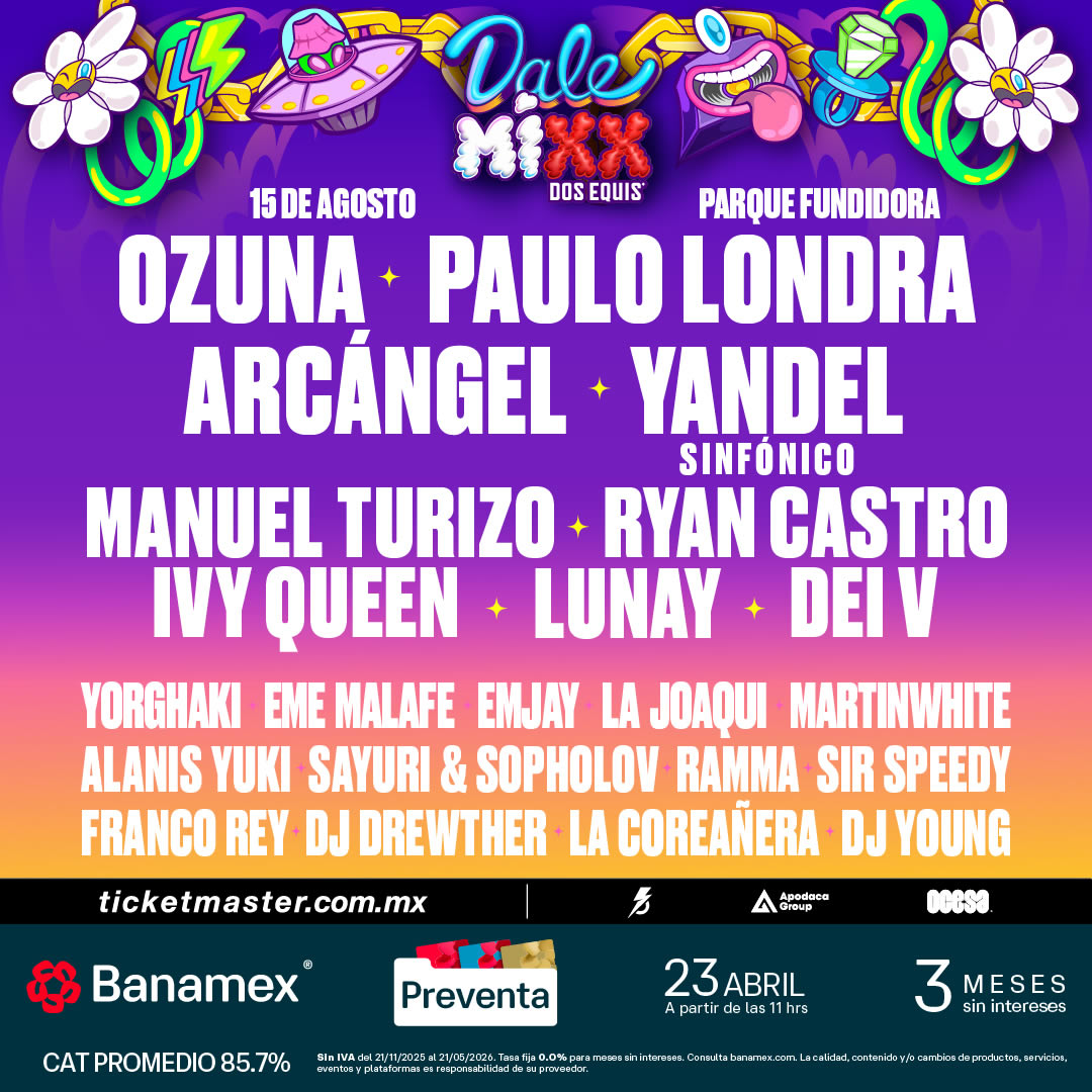 Ozuna, Paulo Londra, Arcángel, Yandel Sinfónico, Manuel Turizo, Ryan Castro, Ivy Queen, Lunay, Dei V y más son parte del perreo del año. ¡El termómetro va a explotar! Parque Fundidora – 15 de agosto 2026 – Monterrey, N.L.